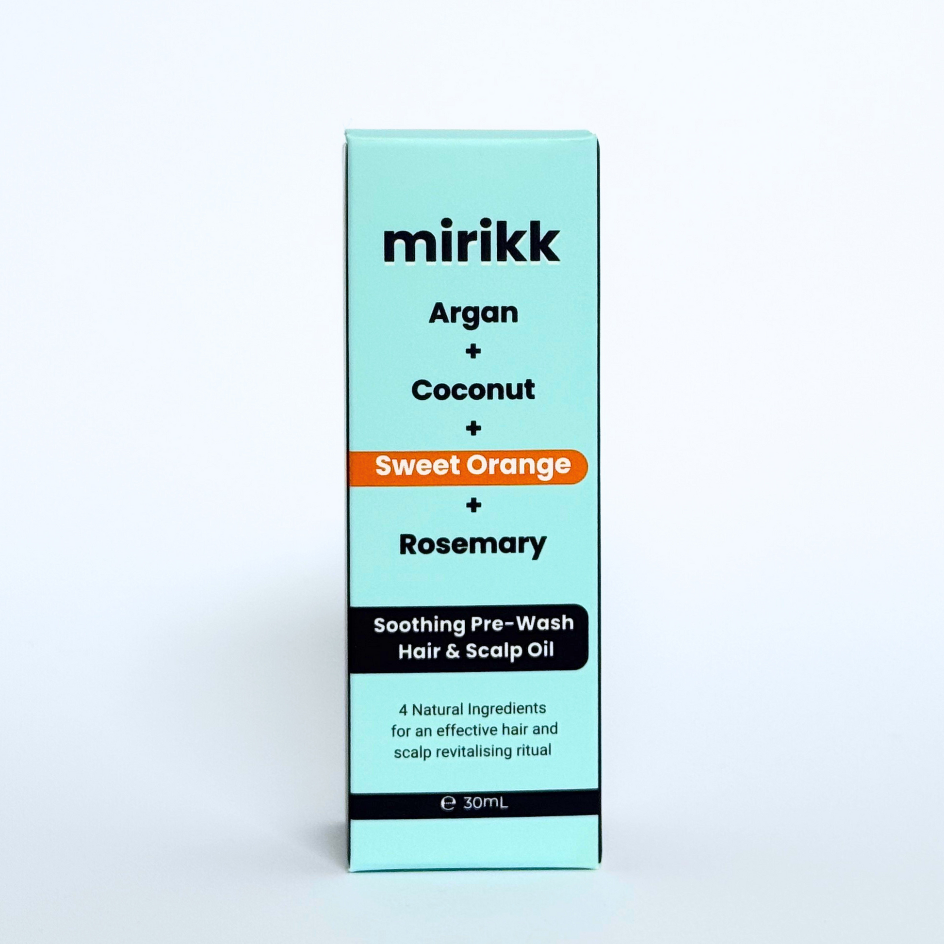Mirikk Sweet Orange Soothing Pre-Wash Hair and Scalp Oil is crafted with natural ingredients, making it a clean, sustainable choice for your beauty ritual.